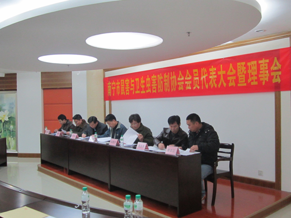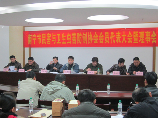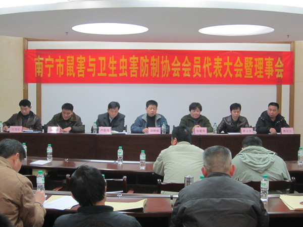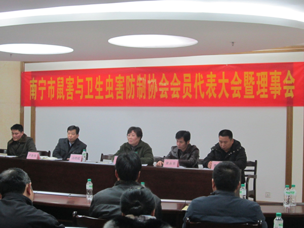 2012年元月9日,南寧市鼠害與衛(wèi)生蟲害防制協(xié)會在南寧市衛(wèi)生局召開了協(xié)會理事及全體會員大會,會議審議并全體通過了協(xié)會工作報(bào)告、財(cái)務(wù)報(bào)告及新一屆協(xié)會領(lǐng)導(dǎo)選舉。康凈公司總經(jīng)理黃永幸先生當(dāng)選新一屆協(xié)會副會長。圖為南寧市衛(wèi)生局長湯曉斌、愛衛(wèi)辦常務(wù)副主任盧世偉、安愛萍會長(原南寧市疾控中心黨委書記)、愛衛(wèi)辦副主任許茂松(協(xié)會副會長)、副會長馮向陽(廣西自治區(qū)疾控病媒專家)、副會長黃永幸、秘書長費(fèi)百江在主席臺就座。