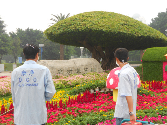 為做好2012年南寧兩會(huì)一節(jié)前、中、后部分重點(diǎn)公共場(chǎng)所保障性消殺工作,2012年09月18日至30日在南寧市愛衛(wèi)辦的組織下,康凈公司四個(gè)組分別對(duì)“南湖南廣場(chǎng)、朝陽(yáng)廣場(chǎng)、金湖廣場(chǎng)、民歌湖廣場(chǎng)”進(jìn)行加強(qiáng)“四害”消殺工作,圖為康凈公司技術(shù)人員在現(xiàn)場(chǎng)進(jìn)行施工。